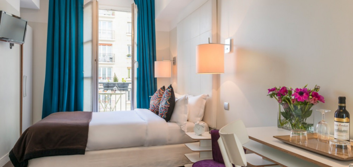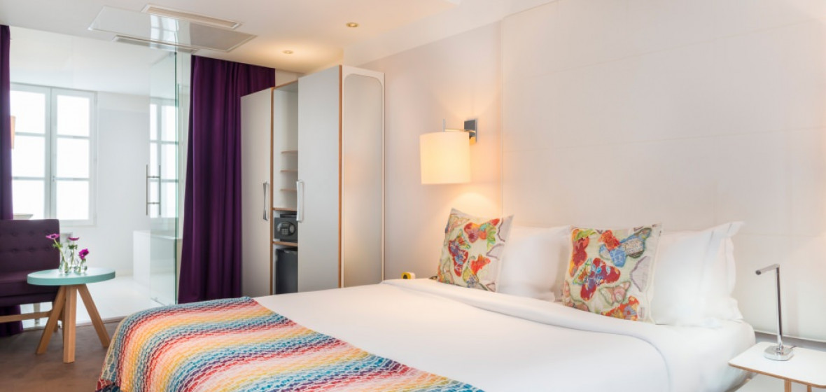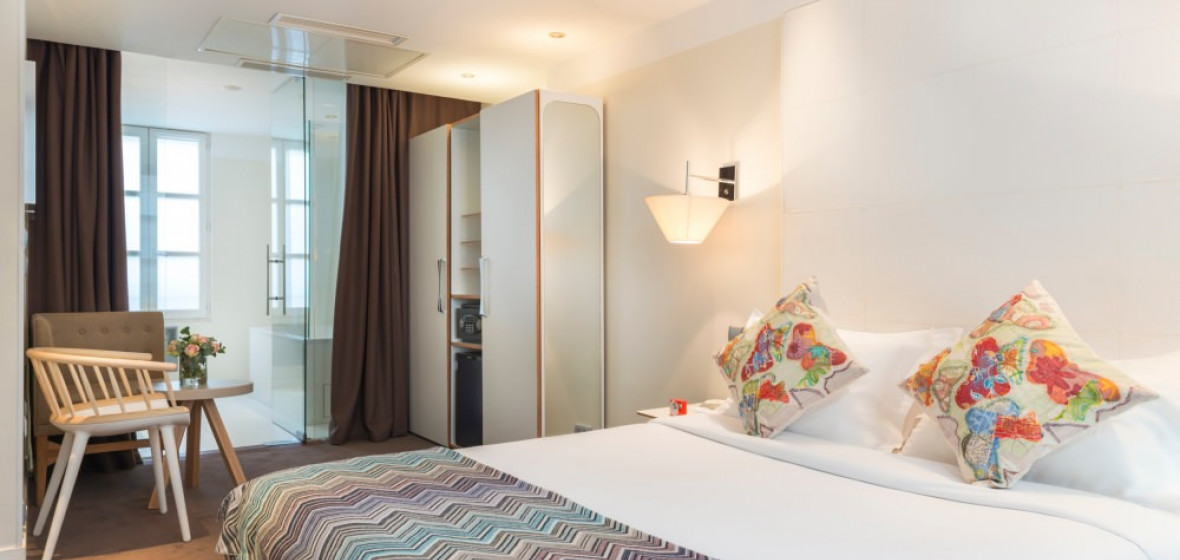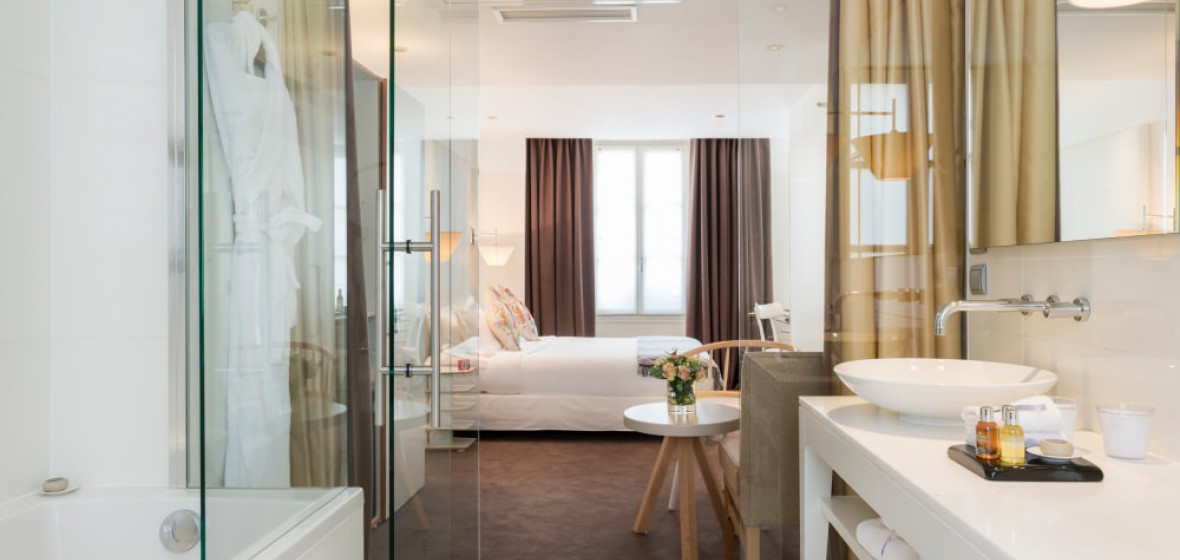 "Designer Bruno Borrione certainly knows how to pretty up a hotel room. Add a chic address in Saint-Germain, and you've got the perfect place to base a whirlwind city break."