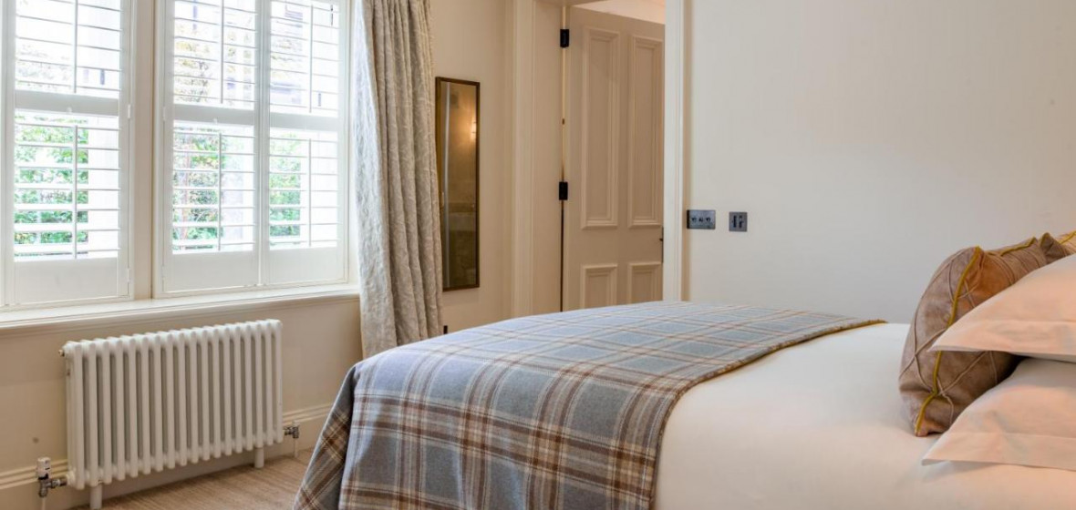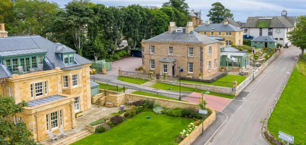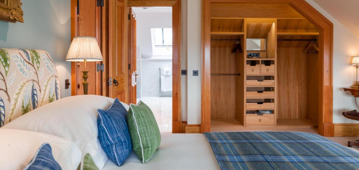 "After a windswept walk on the beach at Royal Dornoch, one of the prettiest spots on the north-east coast, sink into a bespoke tweed sofa by the roaring fire in the wood-panelled library of this elegant manse with a warming dram."