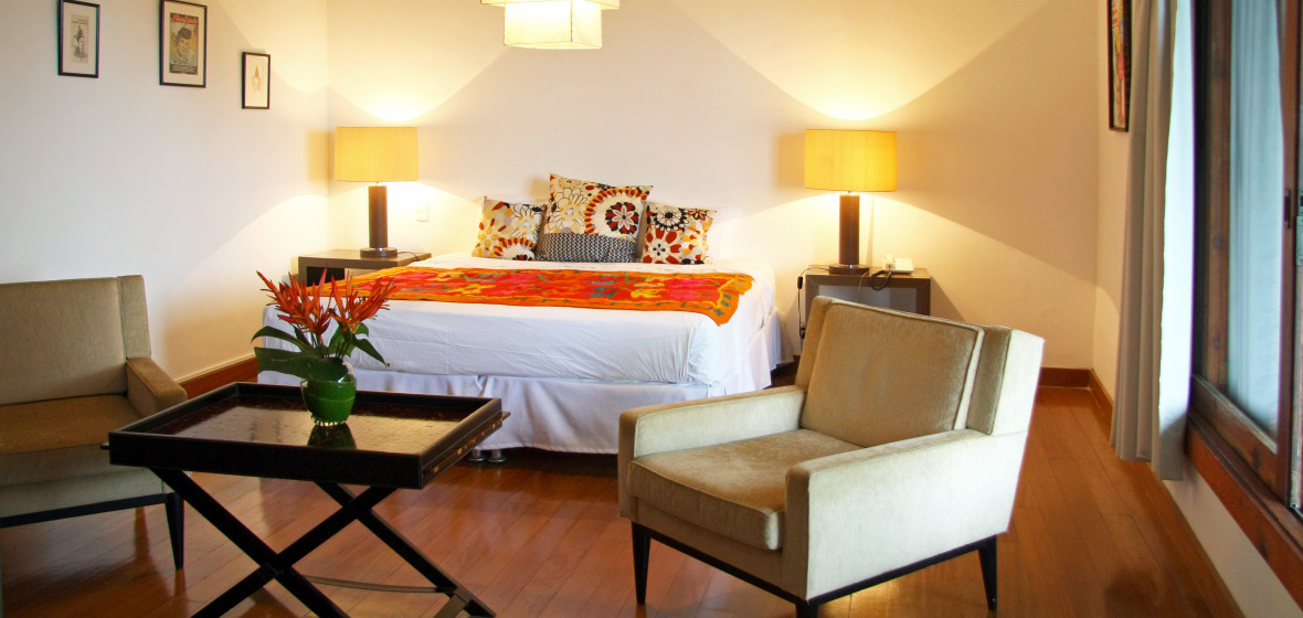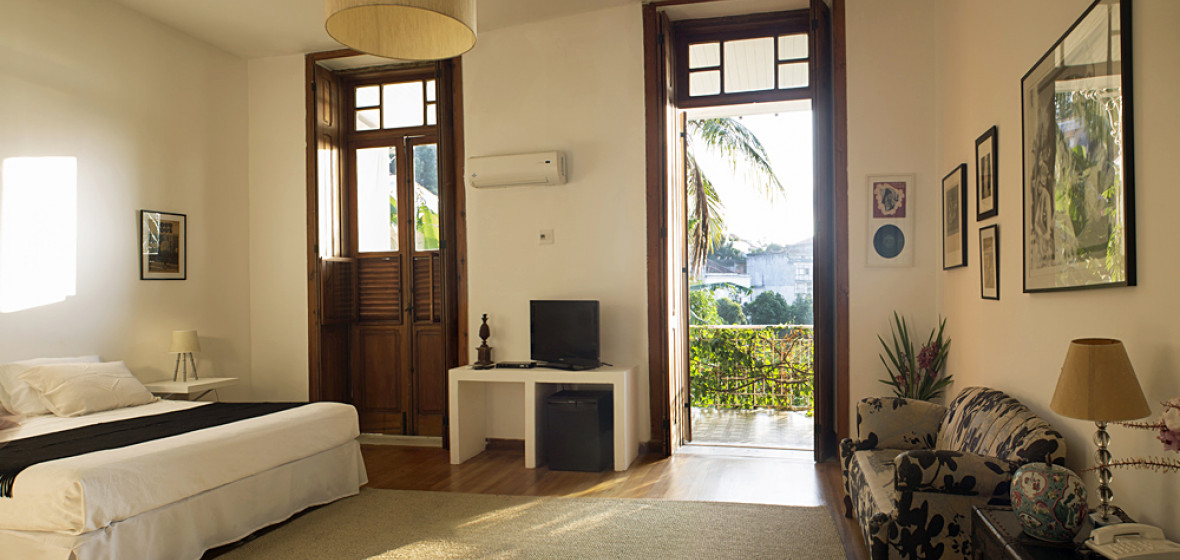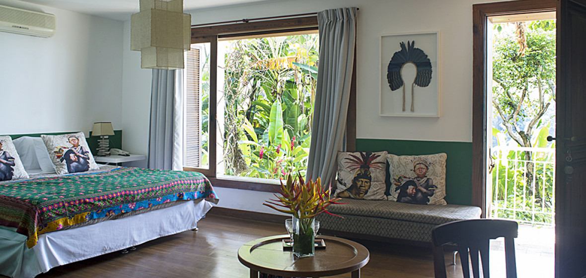 "High ceilings, leafy balconies and enormous bathrooms combine to deliver an original hotel in the heart of Santa Teresa, where the rhythm of samba always drifts in the air."