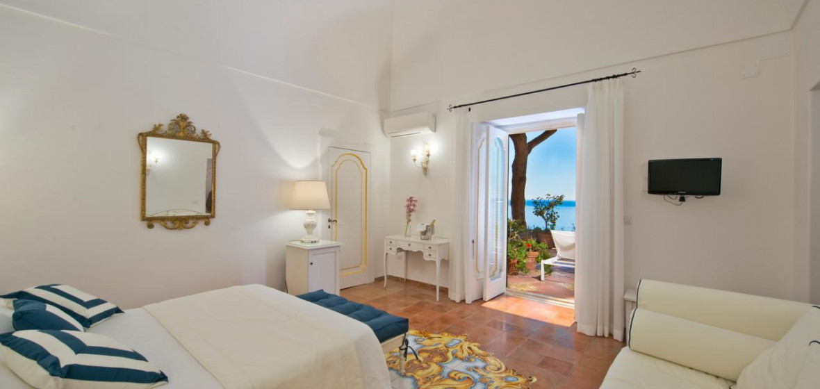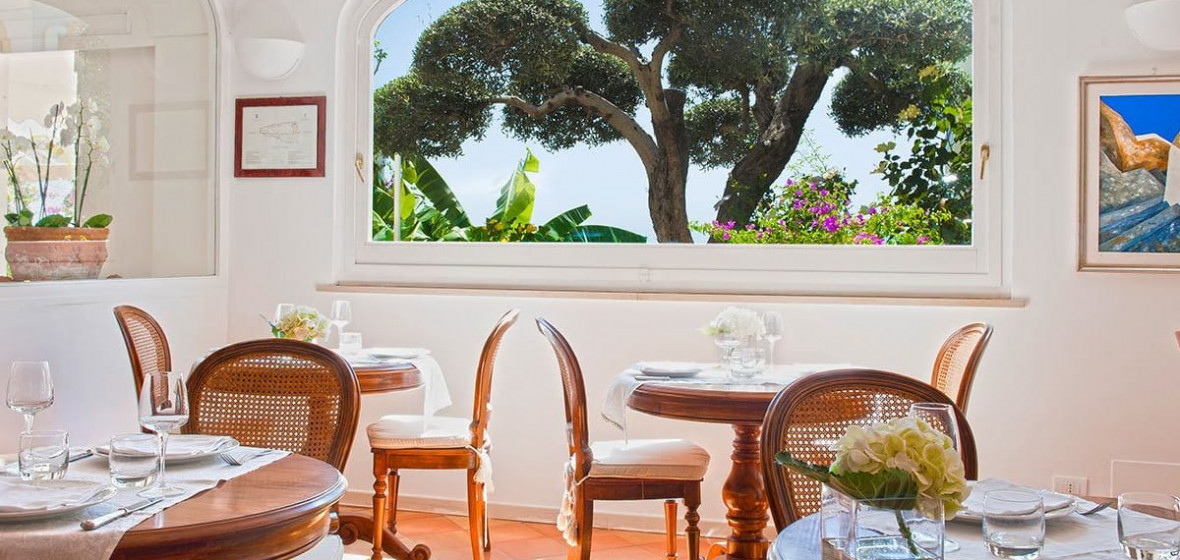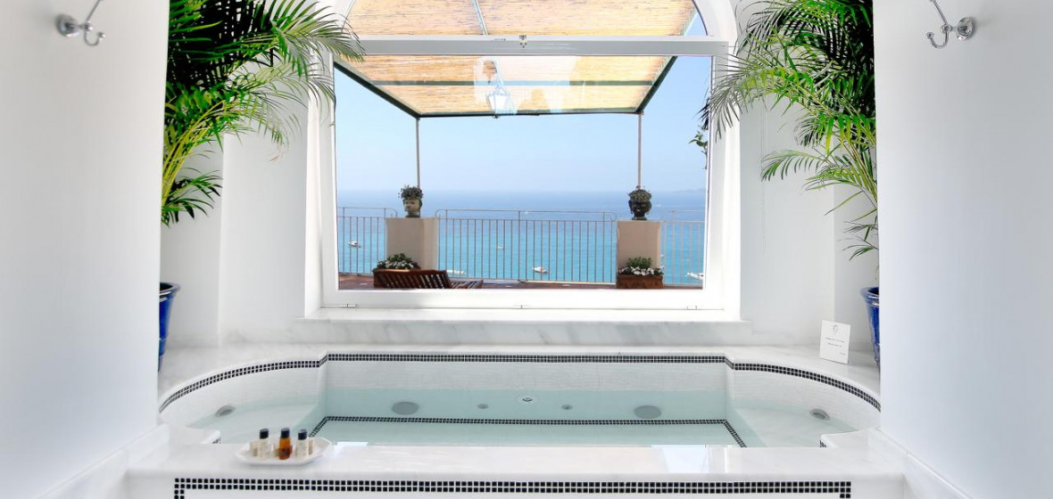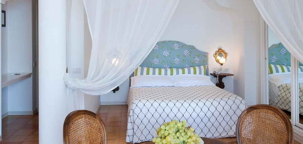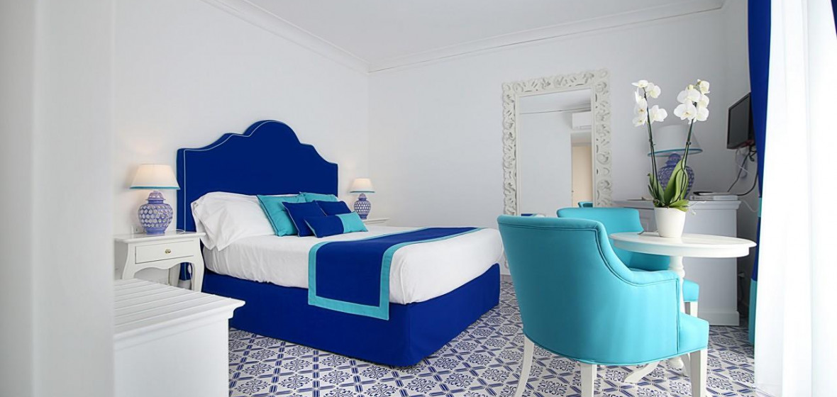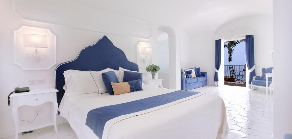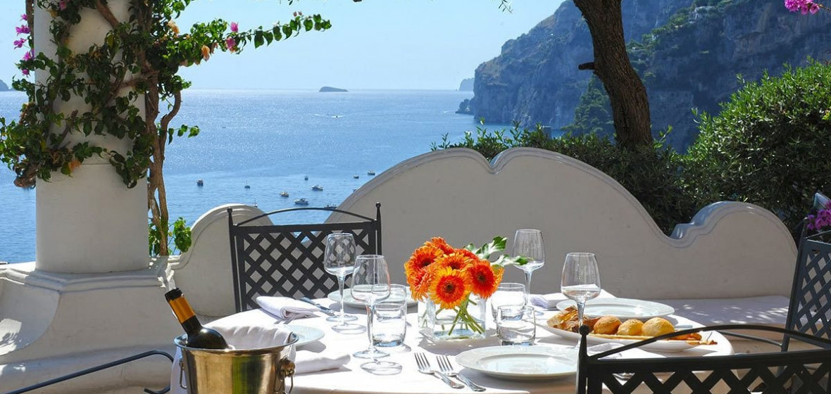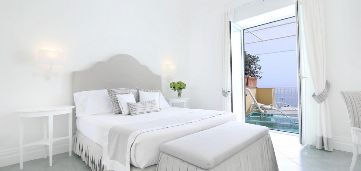 The bright, airy reception of this smart boutique hotel really sets the tone of the place from the moment you arrive. Smiling staff members are on-hand to welcome you and all around is vivid colour, from attractive tiles and artworks to picture-perfect views of Positano and the sea from its large terrace. Rooms are spacious, furnished in pale colours, and many have large sea-facing balconies. Breakfast is a beautifully laid-out buffet served on the panoramic terrace in fine weather.