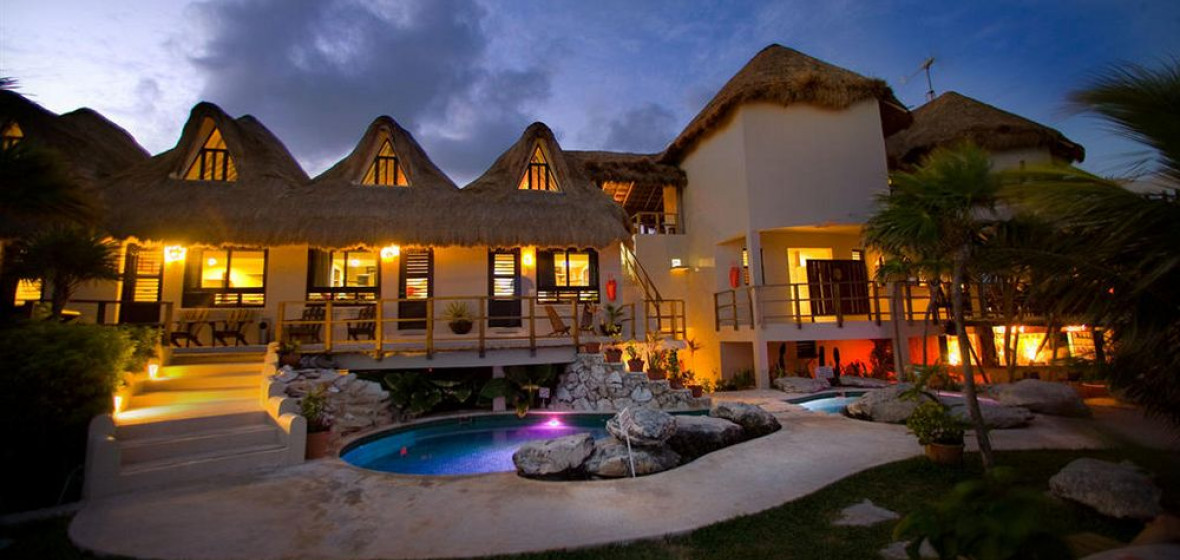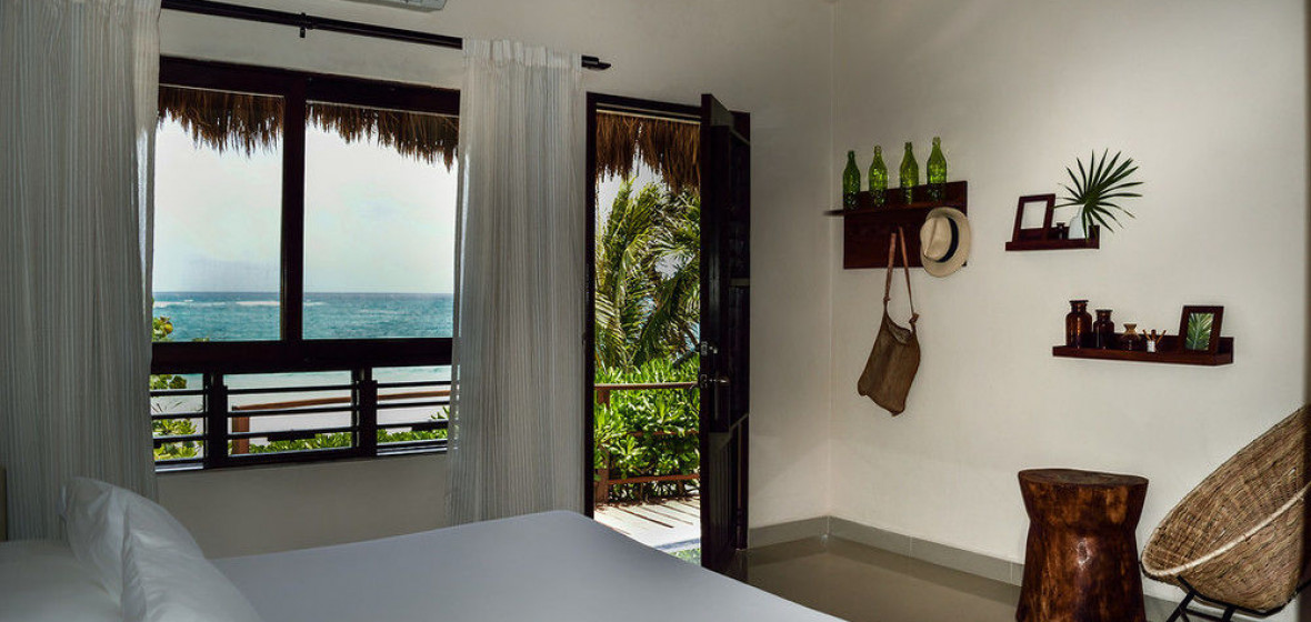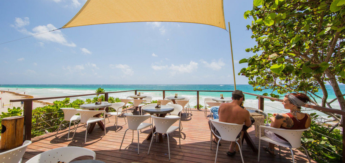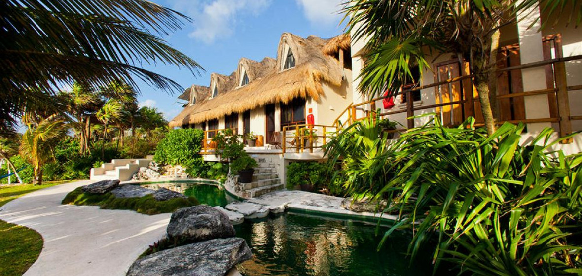 A small but perfectly formed beachside hotel where cream walls, traditional thatched roofs and granite stone offset the youthful feel of the place. Rooms have a funky split-level design and outside there is a small but gorgeous mosaic-tiled pool and a popular restaurant. Friday nights see DJ’s and party crowd move in to try the great cocktails and recreate a little of Tulum’s once legendary beach-party reputation.