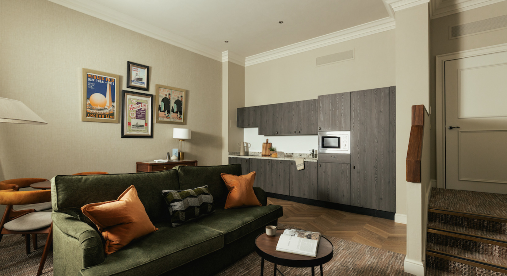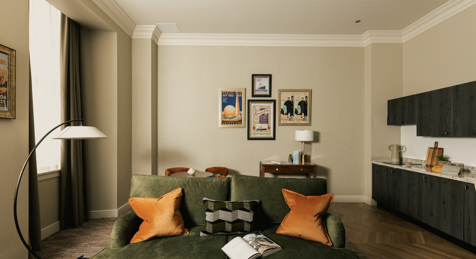 The design leans towards industrial-chic without tipping into total minimalism, with exposed brick, muted greys, warm woods and generous natural light, paying homage to the building's rich maritime past (it was HQ to the Anchor Line Shipping Company in a past life) and the luxurious aesthetics of 1920s ocean liners.Studios and apartments are spacious by city-centre standards, with firm, comfortable beds dressed in crisp white linen. Bathrooms are sleek and modern, with walk-in rainfall showers and good water pressure. Practical touches abound, from large wardrobes and desks to blackout blinds that actually work. It’s clear this place has been thoughtfully designed. And for fresh air lovers, the windows actually open!