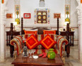 “Traditional old haveli elaborately and colourfully decorated. Beautiful intricate bedrooms and suites with artefacts, furniture and old family photographs. Shady courtyards and two restaurants - one on the roof terrace with lovely views and great food. Understated elegance and romance.”