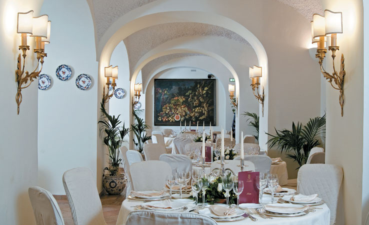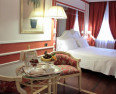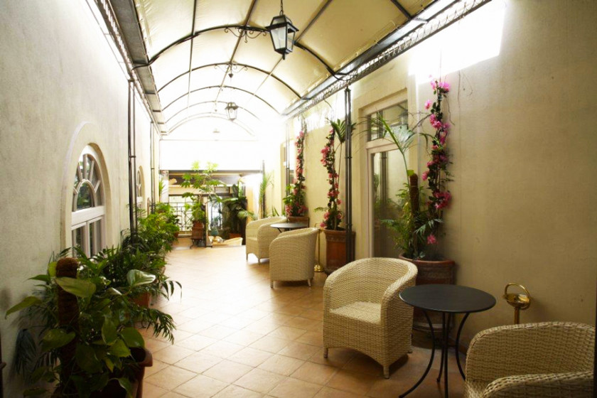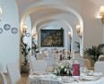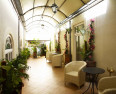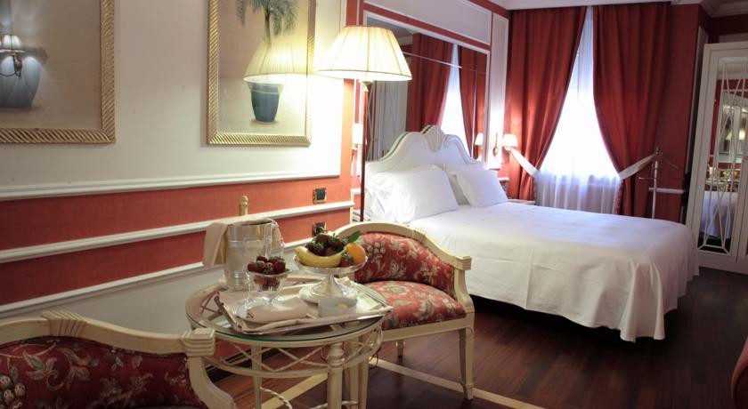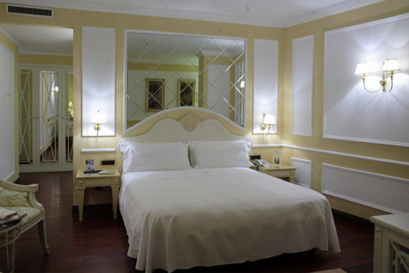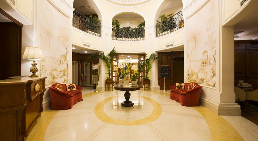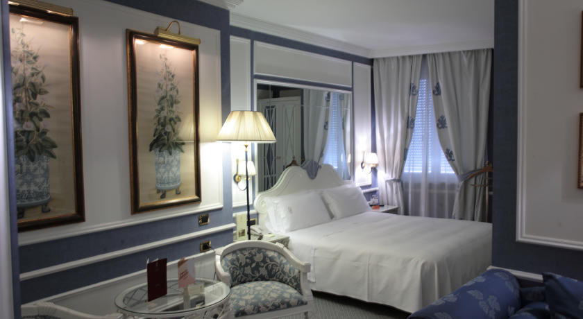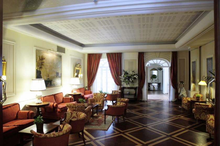 This smart hotel has a great location in the heart of Chiaia’s network of chic little shopping streets. It is housed in a late 18th century palazzo which, in turn, occupies an ex-cloister. Marble, chandeliers, reproduction frescoes and old masters, gilt-framed mirrors and lavish flower arrangements characterise the public spaces while the luxurious bedrooms are done out in strong colours with elegant co-ordinating fabrics. There’s a small garden.