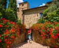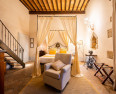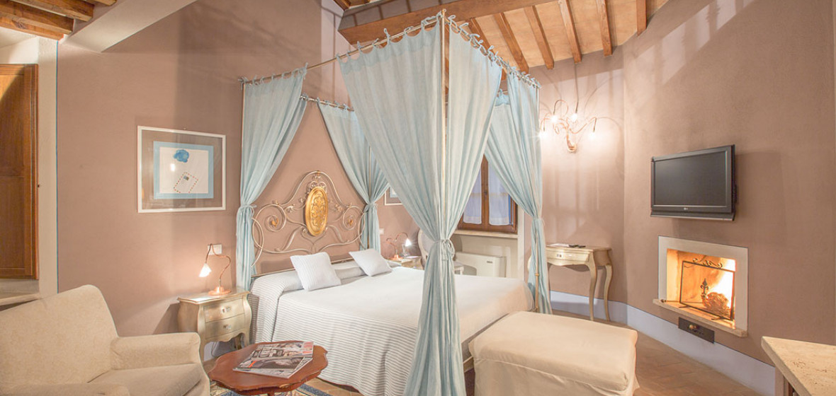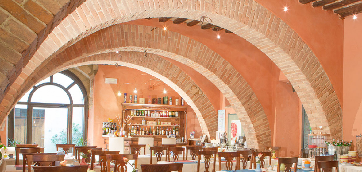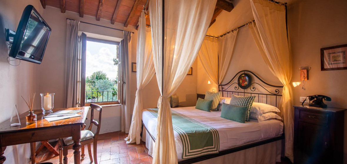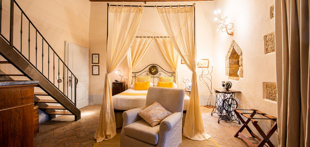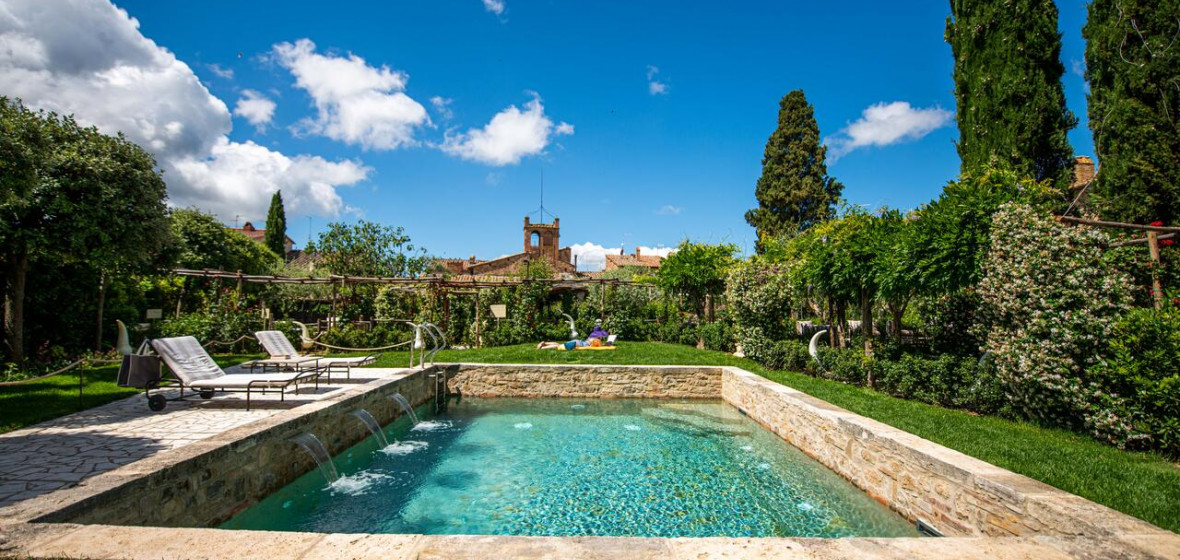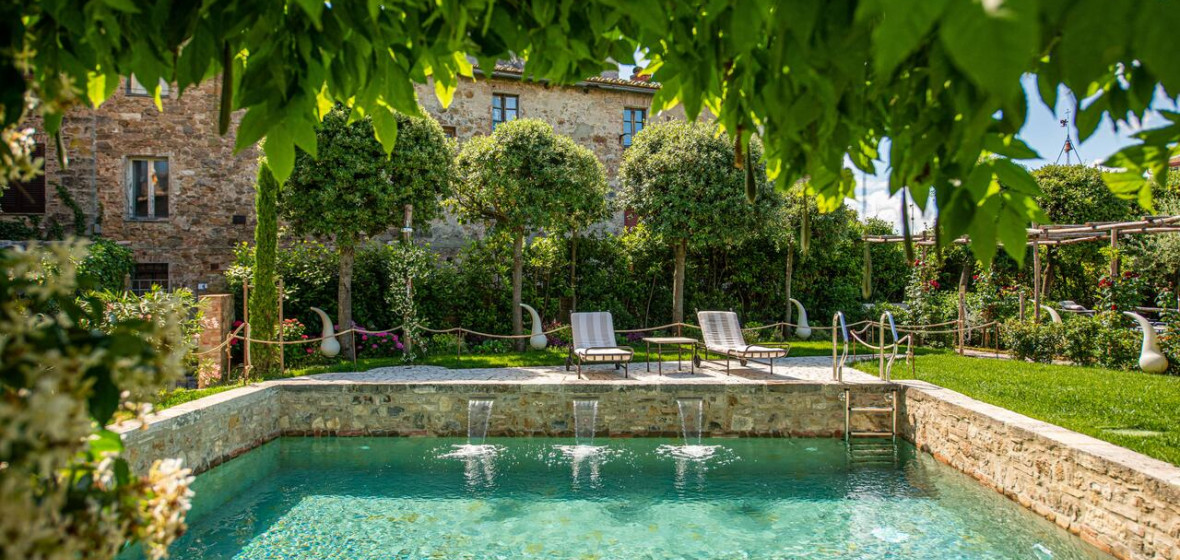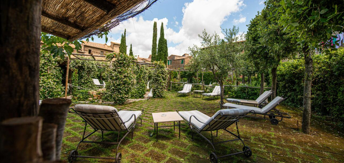 Occupying a 15th-century mansion in the lovely old town of San Quirico d’Orcia, south of Siena, the Palazzo del Capitano has emerged looking better than ever from a recent renovation. It offers 22 pretty rooms, handsomely furnished in Tuscan tradition, a comfortable sitting room/bar in the former stables with a fine vaulted roof and open fire, and an excellent restaurant. In warm weather, meals are served in the lovely shady garden.