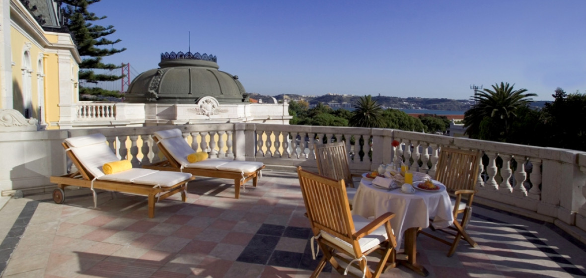 “An opulent extravaganza of stained glass, parquet floors, stucco work and painted rococo ceilings in this 19th Century Palace. Rooms ooze classical elegance and romance with views of the Tagus River from private balconies. Enjoy the fantastic fine dining cuisine, sleek bar, pool and spa.”
