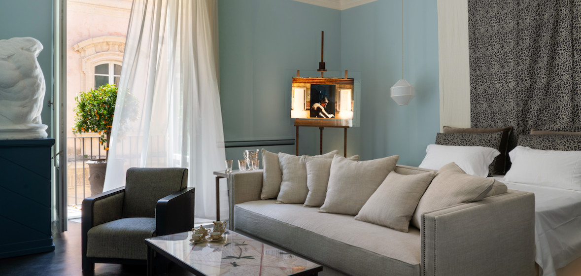 Q92 Noto is a nine room boutique hotel in Noto, Sicily. It's the latest project from award-winning hoteliers the Quartucci family. Their other hotels Hotel Villa Ducale and Hotel Villa Carlotta are two of the best luxury hotels on the island and we expect Q92 to follow suit. This new boutique hotel is all about style and location. Q92 is a 17th-century baroque palazzo in one of the best locations in the UNESCO world heritage site of Noto in Corso Vittorio Emanuele. Opposite the famous Caffè Sicilia and with views of the cathedral and historical sites Q92 is set to become the best place to stay in Noto. Inside you'll find a contemporary style combining understated classical elegance with the grandeur of a noble palazzo with high ceilings and thick stone walls.