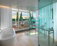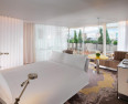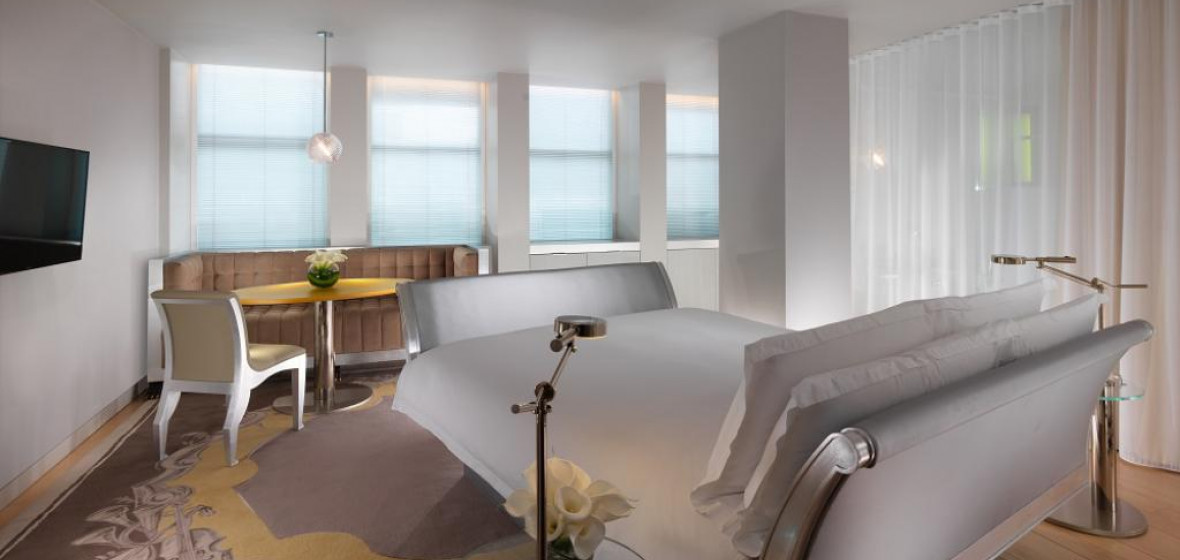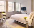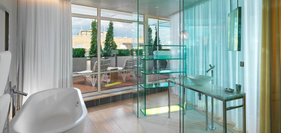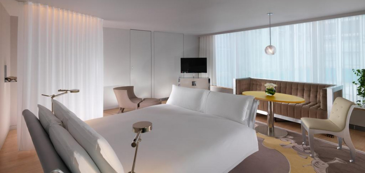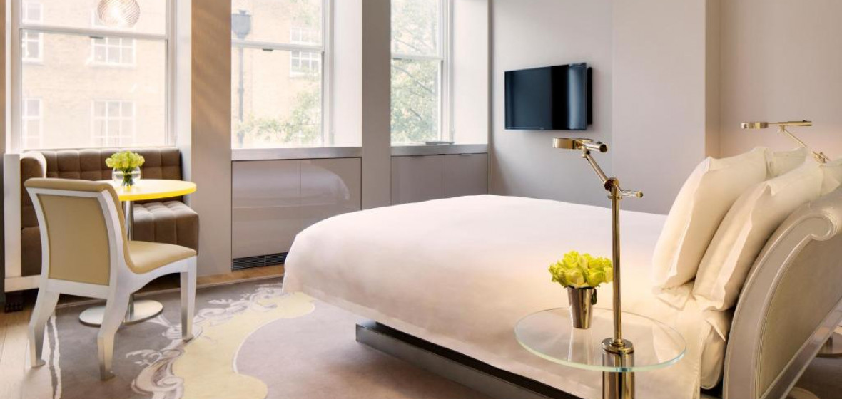 Listed building that housed the Sanderson textiles company, converted into an 'urbane and elegant' hotel by Ian Schrager, a 'destination in its own right'. More quirky than its sister hotel, St Martin's Lane, with a Dali inspired vast white lobby 'punctuated by bright bespoke furniture', ceiling mounted oil paintings, and sleigh beds. Rooms are large, white and open plan, many with walk-in dressing rooms. Well positioned for Oxford Street shopping and media land business meetings. Boasts a top, two storey spa and a large state of the art gym.