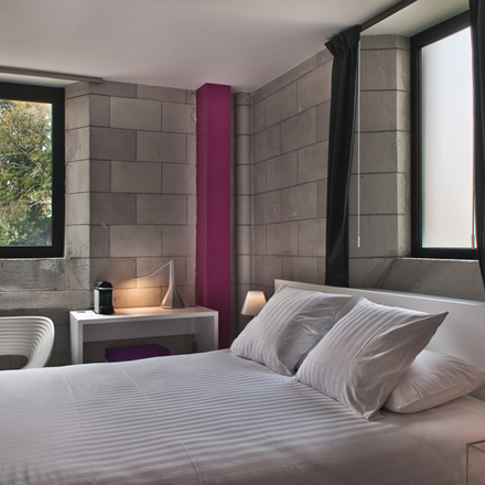 “Situated in the handsome old port of Nantes at the mouth of the Loire, this converted 19th century church in the centre of the town is opposite the gorgeous Botanic Gardens. Now a sleek, contemporary hotel, a soaring space with arched ceilings, stained glass windows and minimalist white interior.”