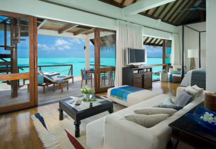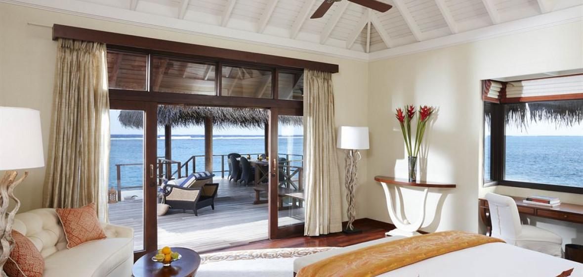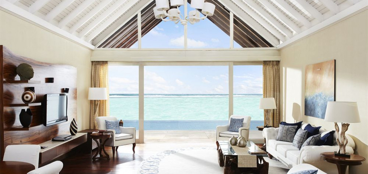 Here, most of the sleek air-conditioned villas are overwater on one of the largest lagoons and facing the ocean for privacy and great views. Even the beach villas are only five metres from the water and have furnished verandas and plunge pools. The fully equipped PADI dive centre, an amazing spa complete with yoga and meditation pavilion and an infinity pool create an appetite for dining with impeccable service. All this just a short ride from the airport.