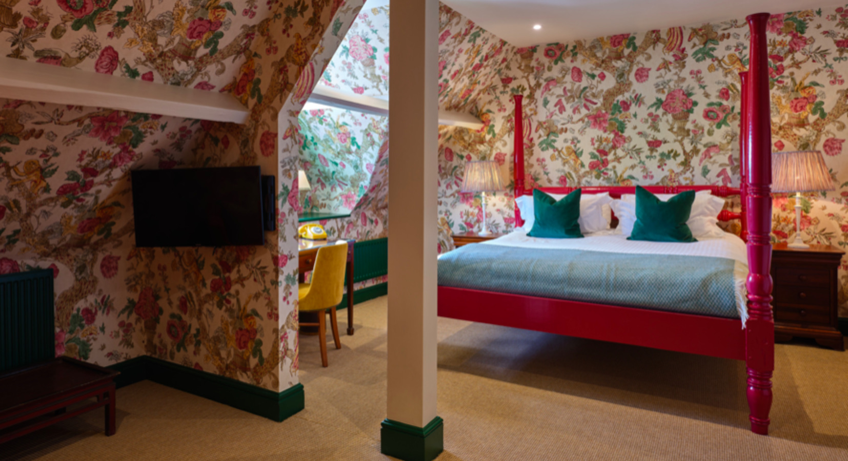 From the outside, The Old Bell Hotel fits in perfectly with its surroundings in the picturesque market town of Malmesbury. One might imagine it to be a quintessential English hotel but, step inside, and guests are greeted by something unexpected, yet exciting. The hotel’s Texan owners, Kim and Whit Hanks, who took it over in 2021, have done a tremendous job of refurbishing the hotel. From the (locally-made) giraffes in the entrance (a nod to Kim and Whit’s love of safaris) to the eclectic collection of art and antiques scattered around the hotel, the decor is both unique and quirky, with guests treated to a luxurious stay.