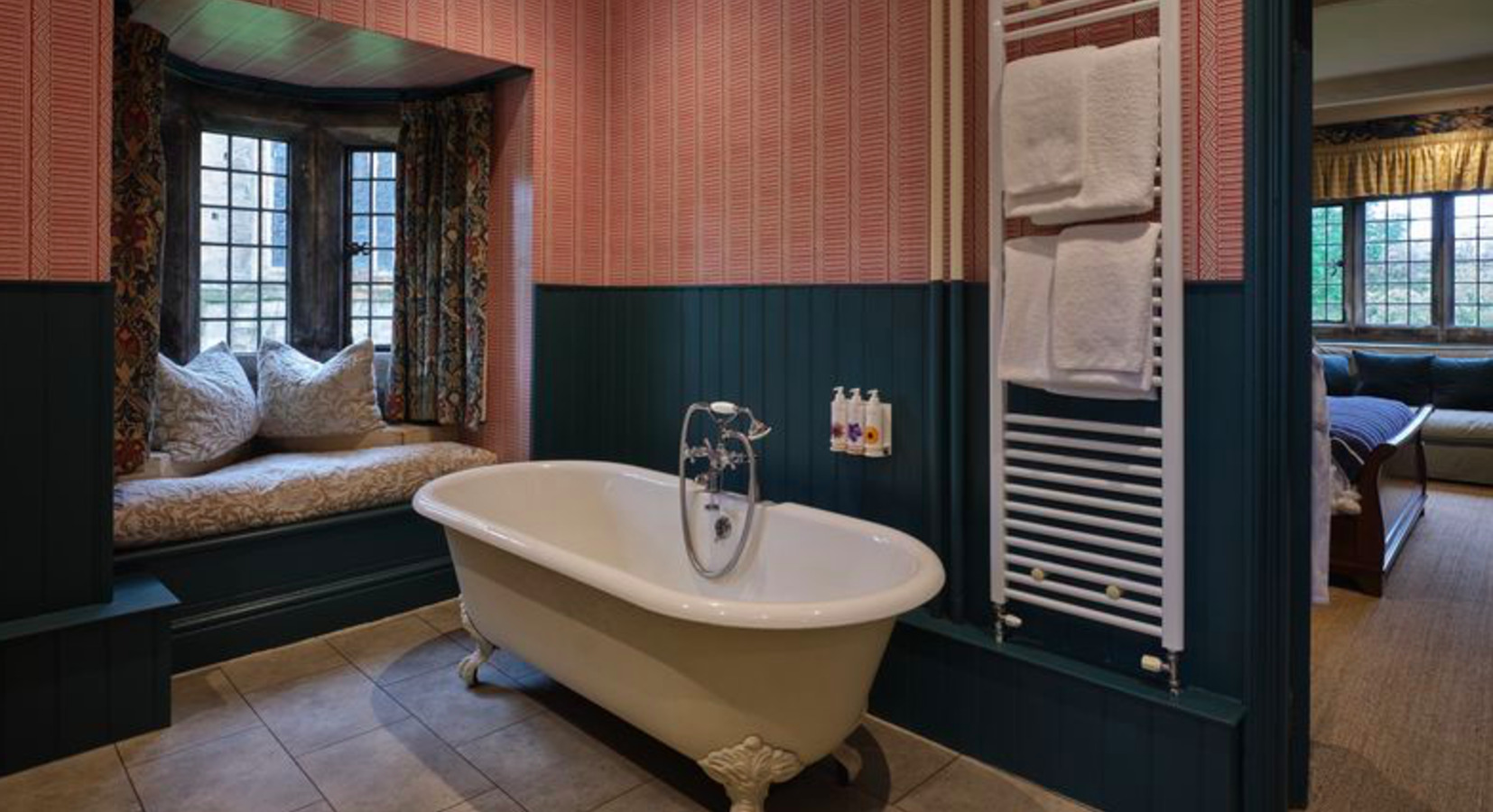 The 34 bedrooms and suites vary in size and style, but intricate, patterned wallpapers, bold fabrics and tiled bathrooms feature throughout. The same combination of decoration and comfort is found in the hotel’s four townhouses, perfect for families or friends staying away together. All accommodation options have Dyson hairdryers, a selection of teas and locally-roasted coffees with cafetière, Bramley products and extremely comfortable beds. Bedtime reading includes a history of the hotel – after all, it is said to be the oldest hotel in England – as well as a handy list of 20 things to do within 20 miles. The importance of the connection between the hotel and the local area is echoed throughout: flowers from the owners’ gardens decorate the restaurant tables, there’s plenty of local produce on the menu and the hotel hosts various community events.