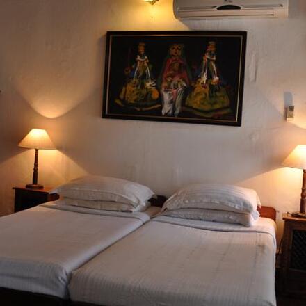 Entering the cobbled courtyard of this atmospheric 200 year old hotel feels like stepping into a bygone era. Filled with potted jasmine, orchid and other exotic plants in amongst the tables, red bench seating and an old well, it's a wonderful spot to sit and contemplate the day or an unwritten novel over breakfast or a fresh lime soda. Characterful rooms share a similar theme - varnished wood floors and ceilings, antique furniture, Bakerlite electrical fittings and quirky details that capture the colonial spirit. All are en suite and either accessed via the main stairway or charmingly quaint spiral staircase or for the top floor superior rooms with rooftop views, guests have to climb the weathered outdoor steps leading off the courtyard. A café next door serves refreshments. Staff are gracious and Meena at the Travel Desk is invaluable if you need assistance with plans or organising your onward journey.
