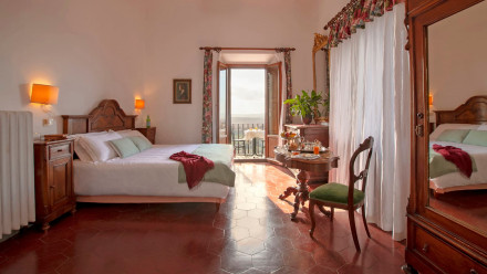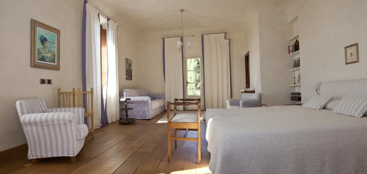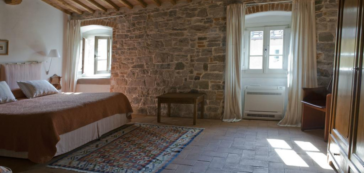 “A beautiful manor house and organic olive farm turned chic eco-lodge in the Tuscan hills. The elegant rooms offer traditional features such as wooden beams, exposed brick and mosaics and the bathrooms are stocked with handmade soaps from the farm. The home-cooked organic breakfast is wonderful.”