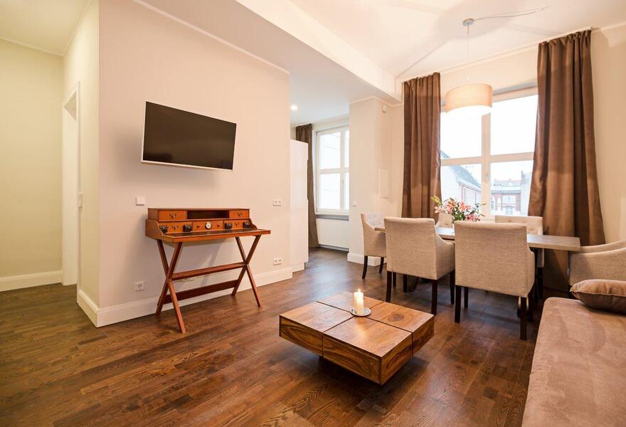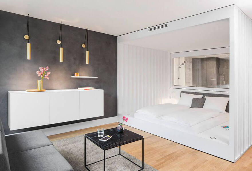 Smart and well-appointed self catering apartments with a distinctly Scandinavian vibe, with bedrooms featuring crisp white linens and minimalist black or grey furniture. Walls have tasteful artwork and the stylish furniture is nonetheless comfy, creating an overall sleek home-away-from-home feel.
