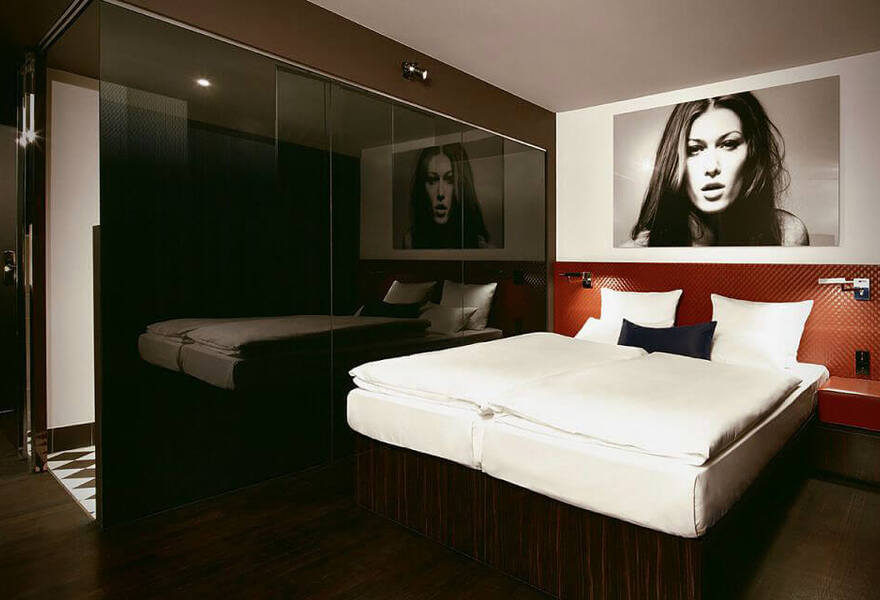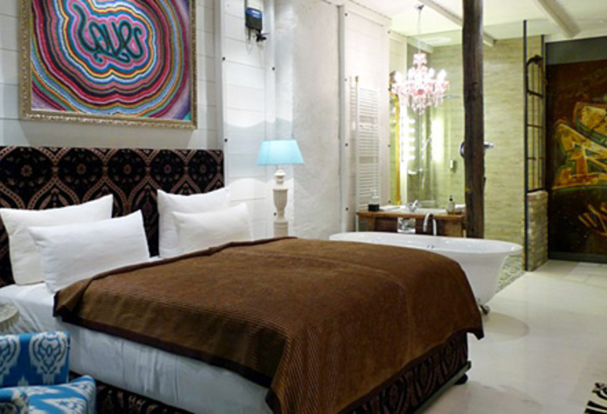 Eclectic, funky hotel with rooms designed by different artists. Each room is as whacky as the next - the themes jump from time, to space, to travel. The sculptures in the lobby and philosophy in the stairwell accompany the guests en route rather like an art gallery in which you can stay the night.