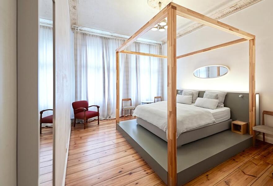 This stylish boutique hotel occupies a heritage property in former West-Berlin. Interiors are simple and elegant with wooden floors, box-spring beds and bright windows; suites also feature a mural that pays homage to a Magritte work. Book a premium suite for a private balcony; an elegant city hotel.