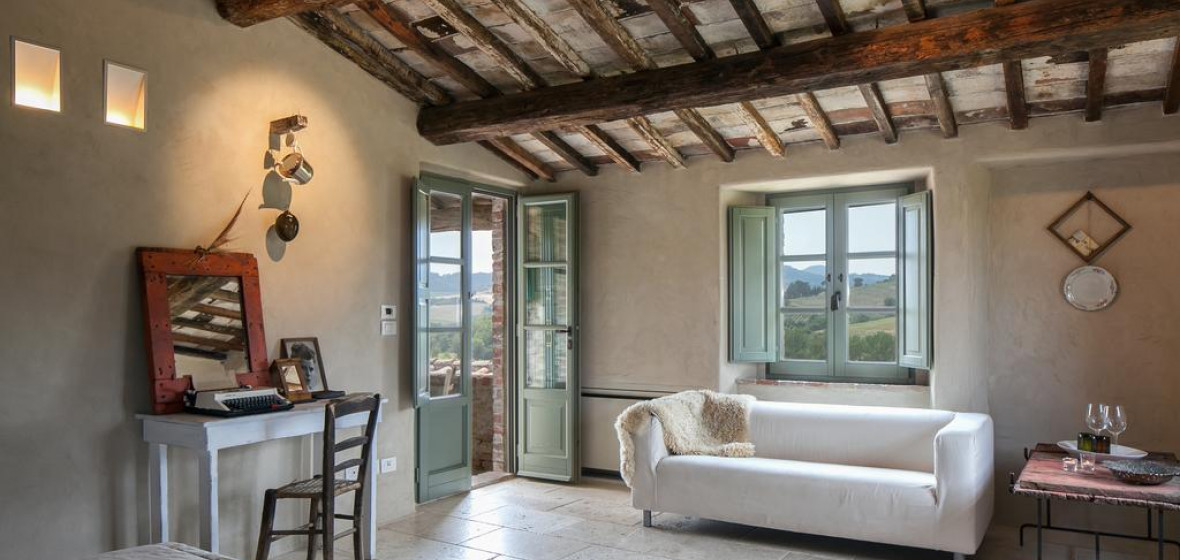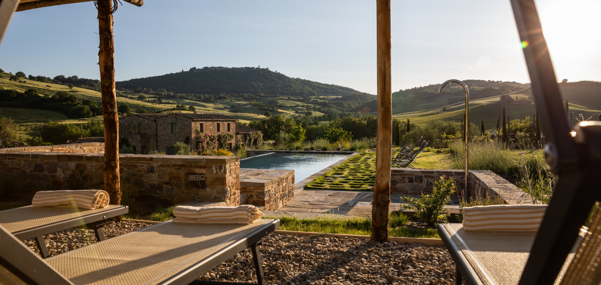 Follonico ist ein kleines Boutique-Hotel mit nur zwei Zimmern und vier geräumigen Suiten, nur 10 Minuten von Montepulciano entfernt. Dieses alte toskanische Bauernhaus wurde von seinen leidenschaftlichen Besitzern sorgfältig restauriert, die ein authentisches Erlebnis geschaffen haben. Wenn Sie einmal angekommen sind, werden Sie es nur ungern wieder verlassen, so magisch ist dieses ländliche Refugium. Die Zimmer und Suiten sind groß und rustikal, mit Steinböden, Holztüren und gewölbten Balkendecken. Rosso Tramonto verfügt über drei Fenster, von denen aus man die toskanischen Hügel bewundern kann, und Verde Intenso ist mit seinen drei Zimmern (Schlafzimmer, Wohnzimmer und Bad), die sich über drei durch eine Steintreppe verbundene Etagen verteilen, wirklich geräumig. In allen Unterkünften gibt es kostenlose Biofficina Toscana-Badeprodukte in den eigenen Badezimmern. Genießen Sie die Aussicht auf die toskanische Landschaft vom Infinity-Salzwasserpool aus oder genießen Sie die Sonne auf der Terrasse. Montepulciano ist nur 5 Minuten mit dem Auto entfernt und hat einige köstliche Weine zu bieten. Näher am Haus liegt Montefollonico, ein charmantes kleines mittelalterliches Dorf, das auf jeden Fall einen Besuch wert ist und einige verlockende gastronomische Möglichkeiten bietet. Die Eigentümer Fabio und Suzanne können Ihnen gerne Empfehlungen geben, und wenn Sie Lust haben, selbst zu kochen, können sie während Ihres Aufenthalts einen Kochkurs für Sie organisieren. Im Follonico gibt es kein Restaurant, aber das Frühstück ist ein biologisches Festmahl, bei dem die meisten Zutaten direkt aus dem Garten stammen und die Gerichte täglich wechseln. Genießen Sie das Frühstück im Sommer draußen und in den kühleren Monaten im Frühstücksraum. In der Halle gibt es eine Bar, an der Sie die köstlichen Weine der Region probieren können. Follonico ist ein bewirtschafteter Bauernhof und Weinberg mit allerlei Tieren: Hunde, Pferde, Katzen, Hühner und Gänse. Es ist abgelegen, still und ruhig, ein Ort, an dem man einfach sein und leben kann wie ein Einheimischer. CIN IT052035B5FHO8BHPF