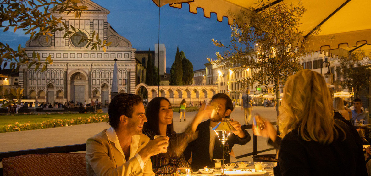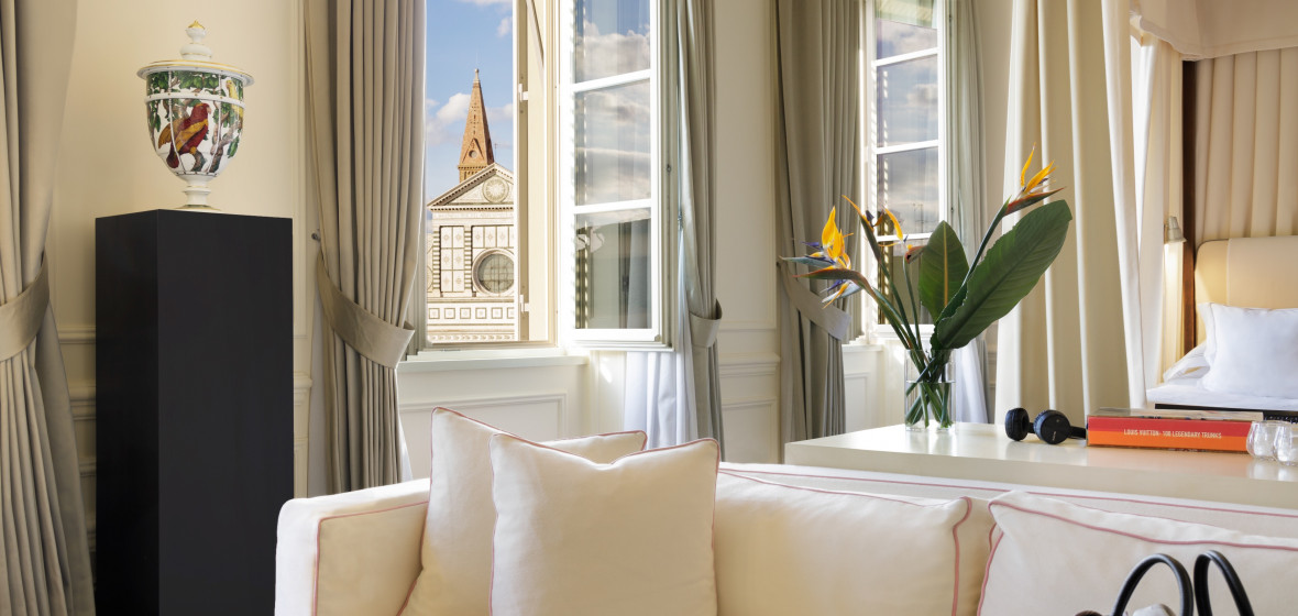 Das im Herzen der Stadt gelegene "The Place Firenze" ist ein außergewöhnlicher Zufluchtsort, der eher einem eleganten Zuhause als einem Hotel gleicht und von allen, die sich hinter seiner subtilen Stadthaus Fassade aufhalten, geliebt wird. Die schicken Innenräume beherbergen jahrhundertealte Artefakte und liebevoll zubereitete Speisen, die den ganzen Tag über in den gemütlichen Salons serviert werden, in denen ein Kamin im Stil von Charles X, Designerstücke aus den 70er Jahren, neoklassische Möbel und Lampen aus den 50er Jahren harmonisch nebeneinander stehen. Zwischen den Erkundungstouren durch die Stadt kann man sich im "The Place" auf einen Drink oder einen hausgemachten Kuchen zurückziehen. Beobachten Sie das Treiben auf der Terrasse im Freien an der Piazza Santa Maria Novella oder entspannen Sie sich bei einem Aperol Spritz in der Bar oder auf der privaten Dachterrasse mit Blick auf die Dächer, die eher an Capri als an Florenz erinnern.