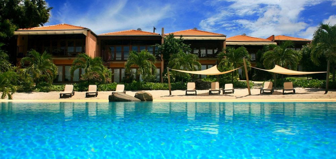 (Go) for everything but the beach. True Blue Bay has colourful, stylish bedrooms, a popular and often lively bar and restaurant on a deck projecting out over the water, and a well-regarded dive centre. But it has no proper beach - though one of the two appealing swimming pools is bordered by a little strip of man-made sand.