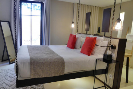 A beautiful white stone castle with a house party feel. Simple, modern rooms and suites with wooden beamed ceilings and white washed walls. Great restaurant, extensive gardens with a swimming pool, and a spa. A great choice for families or groups of friends.