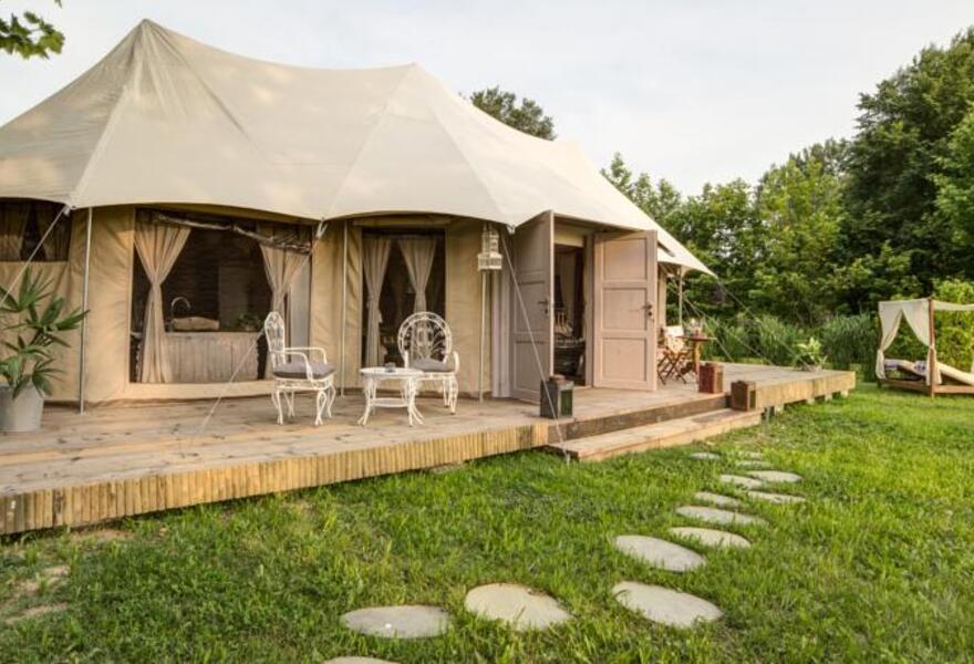 Uber-luxe, eco-friendly tented experience within easy reach of Venice. African style tents are elegant and sophisticated with antiques and creatively designed furniture in natural materials. Smart bathrooms combine rustic woods with ceramic baths. A stay amidst nature with all the mod-cons.