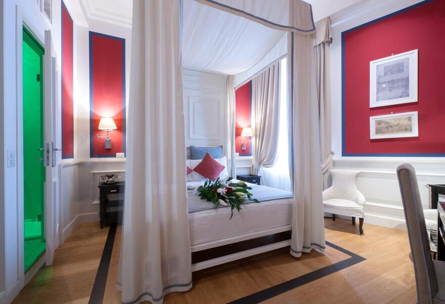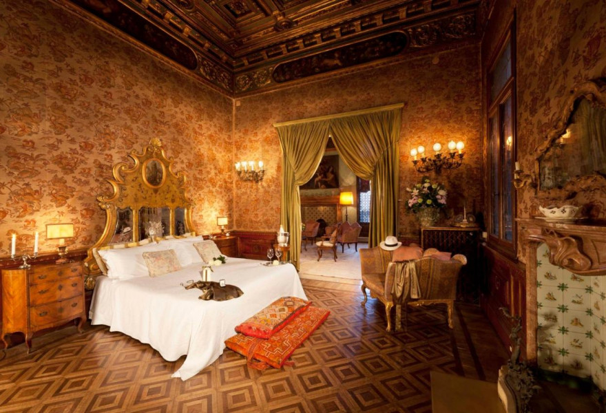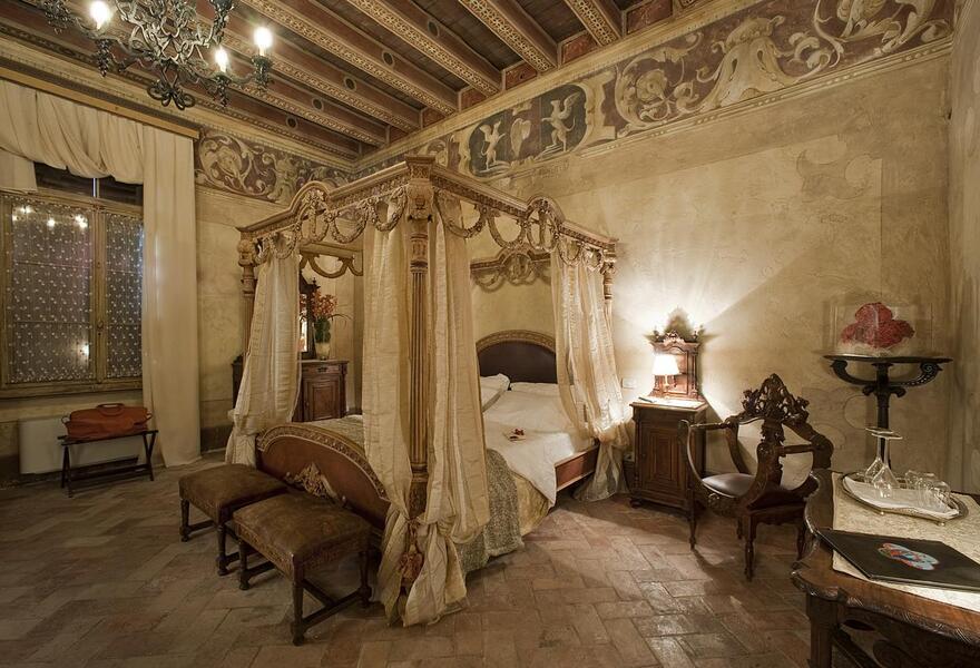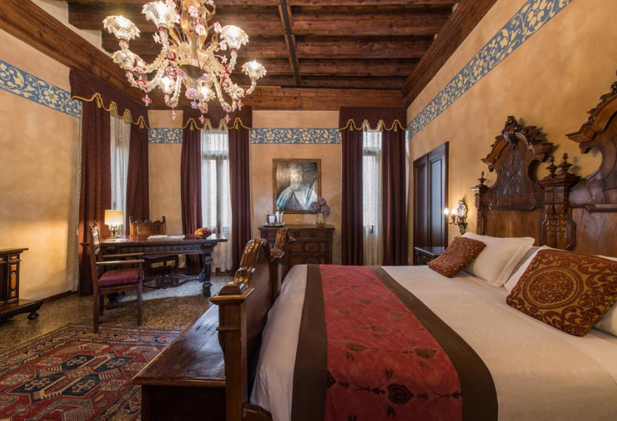 Delightful Renaissance residence in central Venice. Bedrooms and suites filled with delicate fabrics, chandeliers, mirrored lamps, artworks and fireplaces. The hotel's excellent restaurant is nearby. Very authentic stay close to St Mark's Square and the Rialto Bridge.