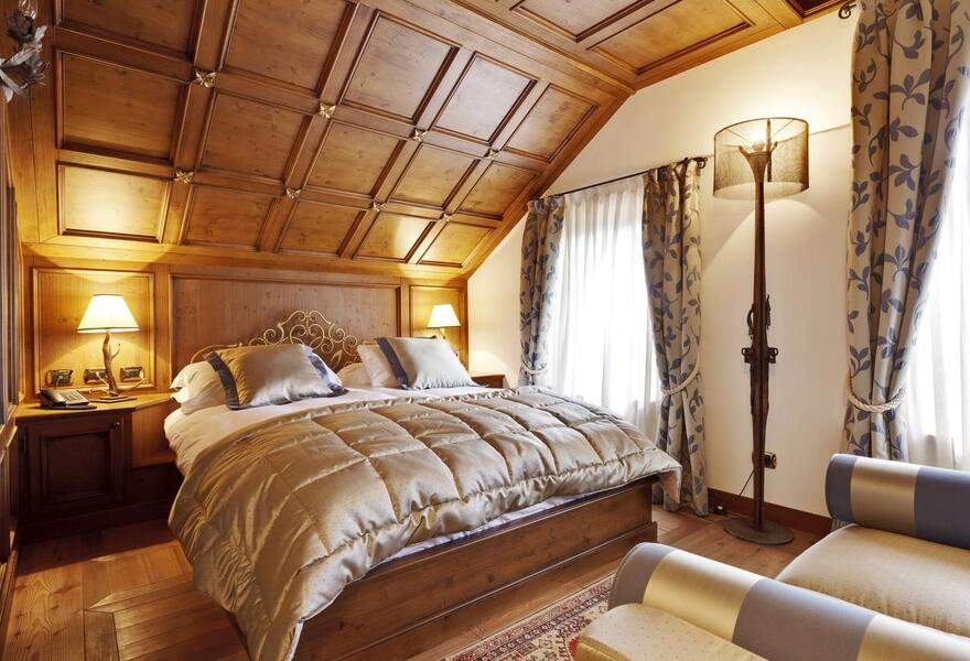 A stunning residence cum hotel with an award-winning restaurant and spa. Traditional elegance and classical opulence throughout the rooms, suites and living areas. Spectacular views from terraces and private balconies over Cortina and towards the Dolomites. A sophisticated hotel for a ski holiday.