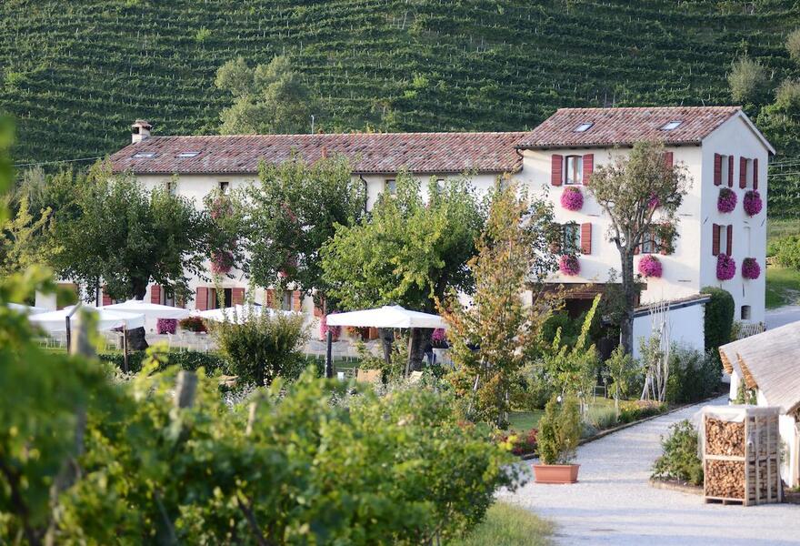 A restored boutique hotel in Farra di Soligo, nestled in the Prosecco hills. The interiors mix classic 18th-century elegance with modern design. Featuring a wellness centre, pool, gardens, and an Italian restaurant with vegan options. A perfect spot for a relaxing getaway with a touch of luxury.