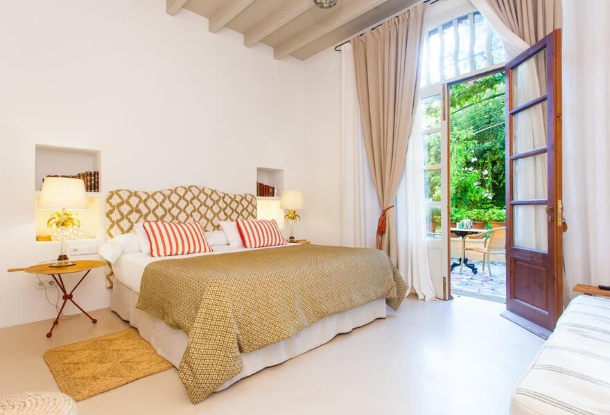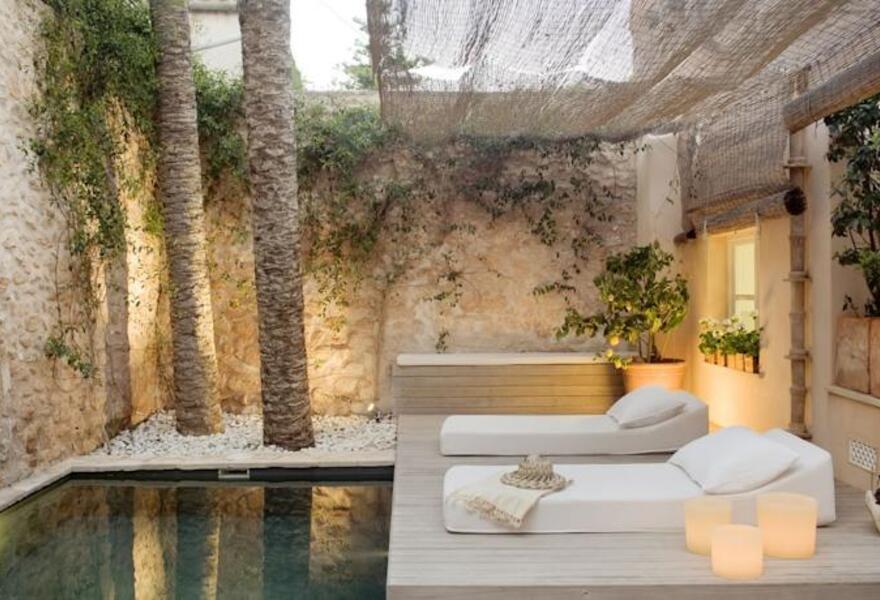 A boutique bed and breakfast in a traditional Mallorcan stone house - bedrooms have exposed pine beams, white washed walls and simple elegant furniture. The peaceful terrace courtyard with small plunge pool is a perfect relaxation spot. Local restaurants and bars just a short walk away.