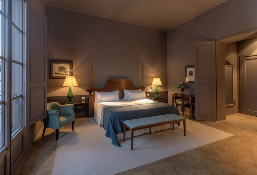 An idyllic hotel on a grand estate surrounded by picturesque olive groves and lush gardens. Lounge about by the pretty pool or roam through the grounds admiring the donkeys and animals. The large, airy rooms feature fine wood furniture and four-poster beds; the delicious cuisine seals the deal!
