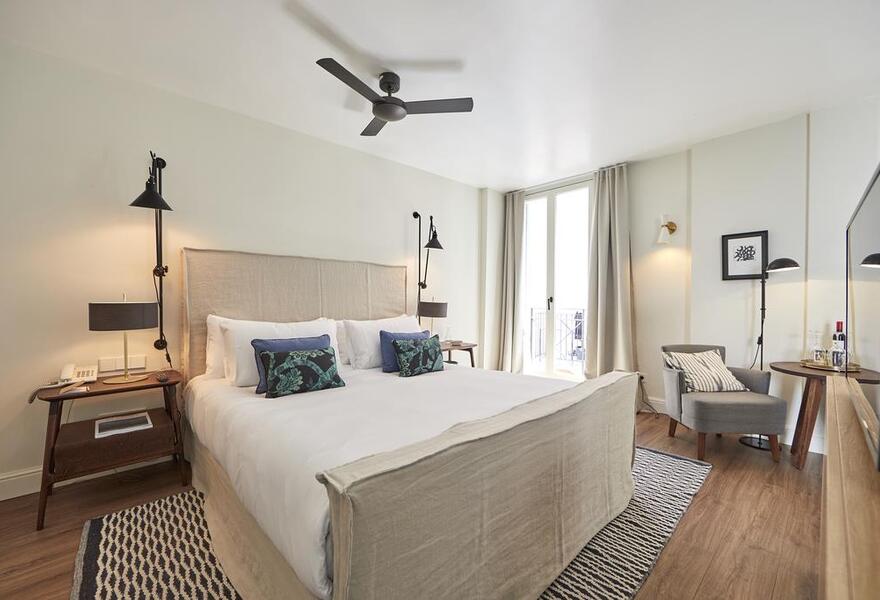 A central yet tranquil city hotel. Enjoy the modern open-plan lounge attractively decorated with palm fronds, bold artwork and sumptuous Persian rugs, giving it both a hip and sophisticated feel. The cuisine is healthy and tasty, and homely rooms feature fun fabrics and natural materials. Superb.