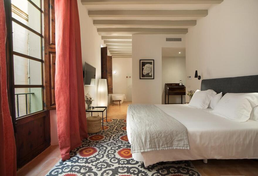 16th century designer boutique hotel in Old Town, close to some of Palma's best nightlife. Bright airy rooms, handmade furniture, Mediterranean floors and original contemporary art. Rooftop terrace with spectacular views and plunge pool. An ideal base for exploring the city.