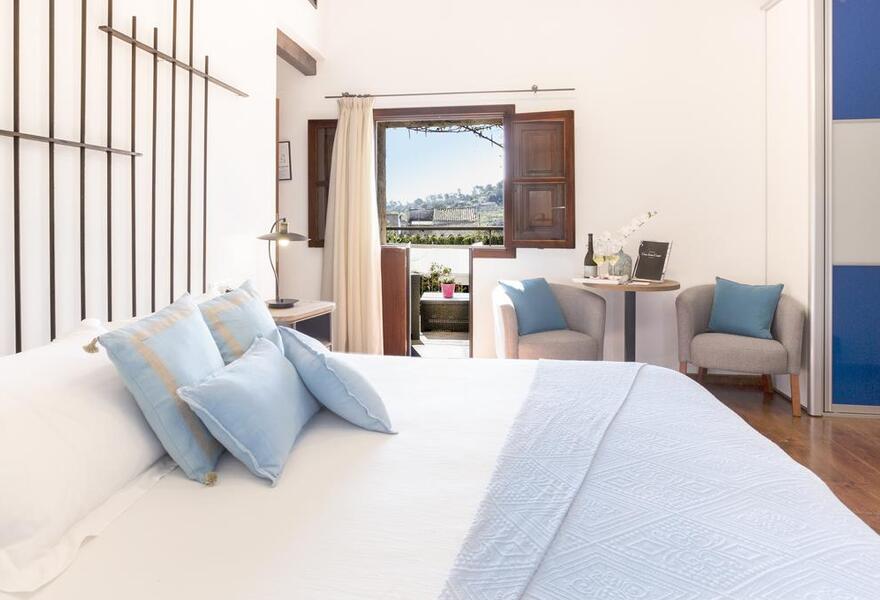 A chic boho stay with epic mountain views. Bright rooms are simply styled with terracotta tiled floors, beamed ceilings, and large modern artworks. Suites are vast and the best have private terraces or gardens. Expect local cuisine, a large pool, and warm hosts. Well suited to couples or families.