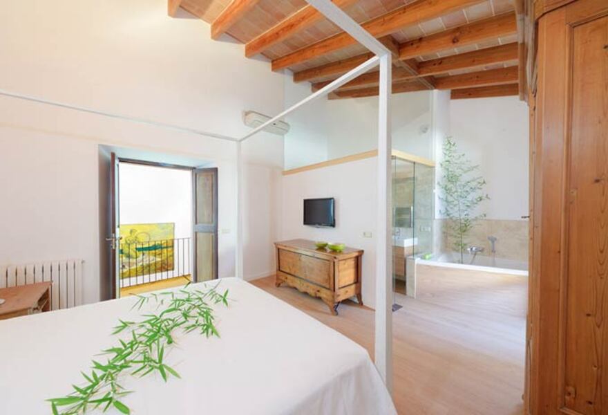 A typical Mallorcan house turned B&B in Caimari, a village in the foothills of the Tramuntana mountains. Light and airy rooms boast beamed ceilings and original features. There's no pool but guests have free access to the nearby municipal one. A lovely off-the-beaten-track authentic stay.