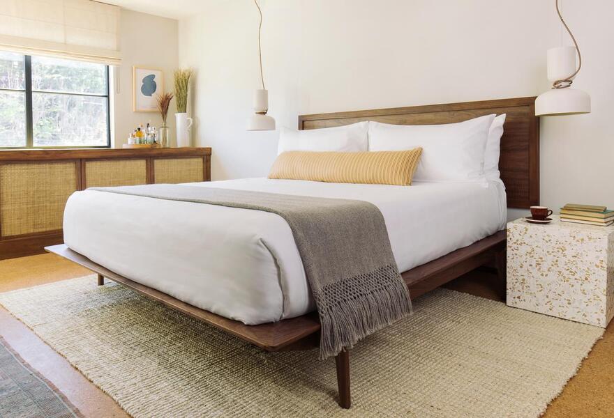 Stylish hotel in the heart of historic West Adams with its art and music scene. Rooms are decorated in a neutral palette with mosaic tiles and plush rugs for a splash of colour. Lovely pool and courtyard terrace with lush landscaping. Close to bars, restaurants and shops. A little oasis in the city.