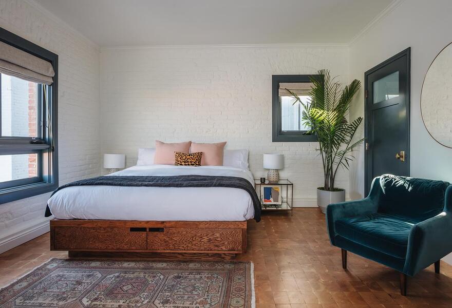 • Plaza La Reina offers a selection of studios, lofts and suites for families or groups in a Spanish-inspired building in Westwood. Think floor-to-ceiling windows, antique-style furniture and thoughtfully designed interiors. There's a leafy inner courtyard and chic shared spaces for relaxing.