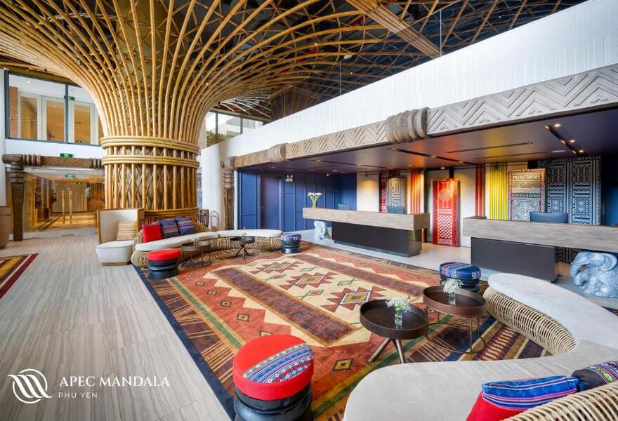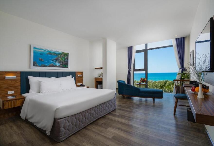 A slick urban high-rise in central Tuy Hoa, with airy shared spaces & contemporary rooms boasting expansive city & ocean views. Room interiors are pared-back and modern, with polished wood, white & cream, whilst communal areas feature warmer geometric patterns. The infinity pool is superb!