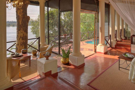 Superb family-operated camp overlooking the Zambezi. One of Africa's top ten safari spots in an unrivalled location under a grove of mahogany trees. Each beautiful, romantically decorated room overlooks the Zambezi. A spot for honeymooners and those who want the best.