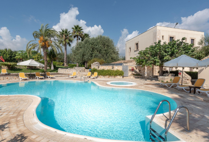 This four-star luxury hotel faces the Vendicari Natural Park in the vineyards of Nero d’Avola. Rooms have a vintage feel, dressed in a blend of antiques and upcycled materials; the best suites have exposed stone features and all rooms offer a private patio. Relax by the pool at this charming hotel.