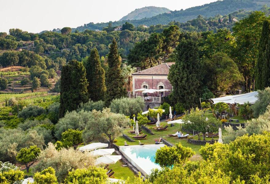 A charming retreat just outside Catania. The decor is chic and rustic, blending modern comforts and traditional elegance - think velvet upholstery plus exposed stonework and wood beams. Boasting lush gardens, a refreshing pool and a cosy bar, it makes for a relaxing stay in a picturesque setting.