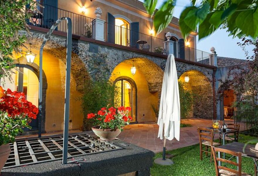 This luxury wine resort occupies a renovated country estate at the foot of Mount Etna. Rooms blend modern and classic interior design; the best have an exquisite four-poster bed. All rooms offer views of the vineyard and black tiled floors made from volcanic lava. Relax by the pool; a stylish stay.