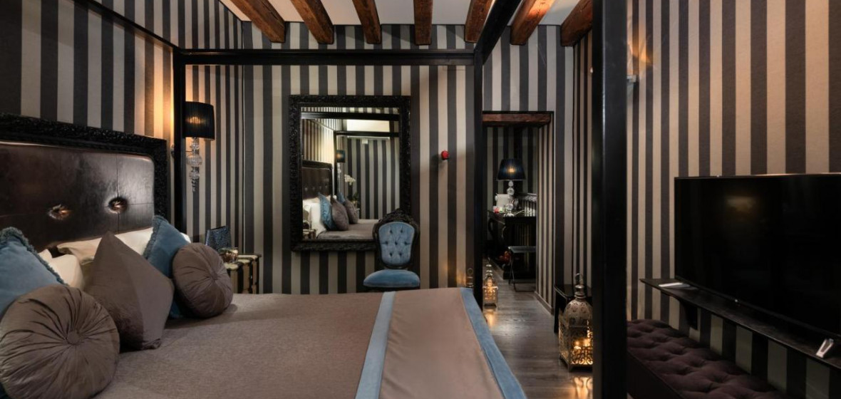 “A charming B&B with a slight Casanova theme. Each room and suite extravagantly decked out in bright fabrics, gilt mirrors, funky chandeliers, some with four poster beds. The roof top is an excellent perch to view Venice from. Romantic but also family friendly.”