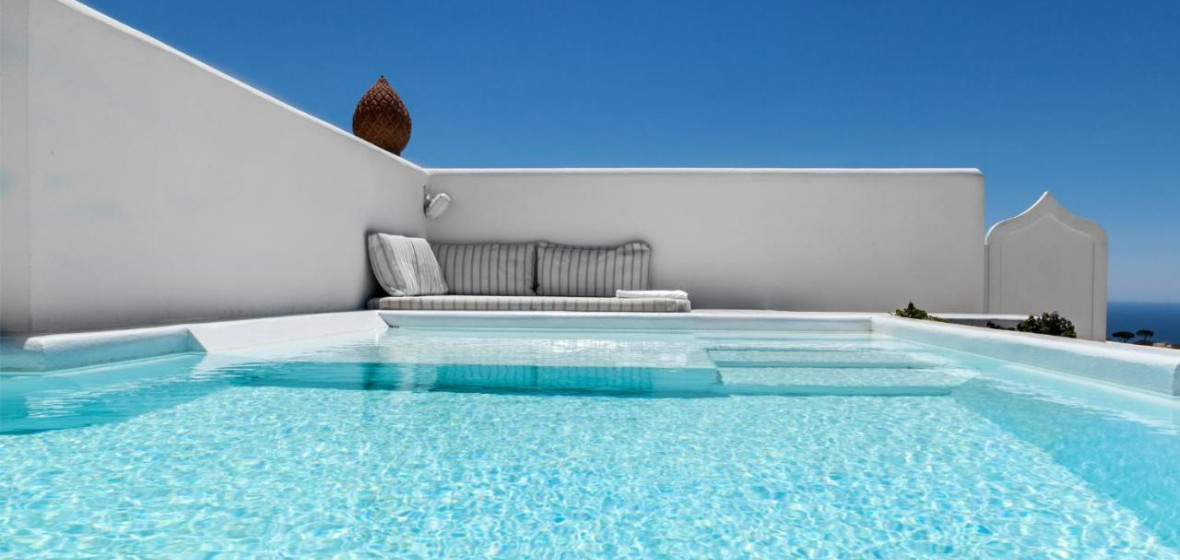This is the Queen of Anacapri, sitting resplendent in amongst the handicraft shops and little restaurants. More formal in feel than other hotels in Capri, this is one for grown-ups. L’Olivo restaurant, the only one on the island with a Michelin star, serves light and innovative Mediterranean food in a dining room furnished with Loro Piana textiles, custom-made plates and glasses designed specially on Murano. The Spa, or Beauty Farm, offers a wide range of treatments from anti-aging, detoxing and weight loss to non-invasive, medical health assessments. Six of the 79 rooms and 11 suites have their own private swimming pool and for those in search of the sea, there is Il Riccio restaurant and Beach club in amongst the rocks.
