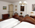 There’s nothing to advertise that you’ve arrived at the ‘House at the Big Boot’, not a sign nor a plaque, just a welcoming entrance hall lined with paintings and antiques, visible through the glazed front door. You wouldn’t want to miss it though. Staying at this enchanting home from home, owned and run since 1989 by the delightful Rippl family feels just like staying with friends. Simple white-painted and exposed stone walls, parquet and terracotta floors provide a backdrop for the antiques, pictures, rugs, mirrors, clocks, pots and books that fill the house. The 12 bedrooms (some of which interconnect and have kitchenettes) are all different, bursting with character and spotlessly clean. Public rooms include a charming vaulted breakfast room with stone walls, the setting for a daily spread, and a subterranean rumpus room, perfect for kids, whilst their parents will no doubt appreciate the honesty fridge.