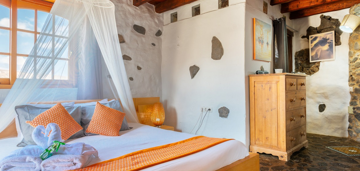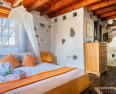 This place is as far from shocking pink English hides and Irish bars as Lanzarote gets. A collection of marble-floored yurts and villas (powered by sun and wind) in a grove of mango, banana and lime trees, it’s eco-tourism at its best. Guests are encouraged to collect their own eggs for breakfast and help themselves to organic veg. Kids will love the play area, sunken trampoline and Mollie the donkey. Arrieta golden sand beach and village are a five-minute walk. Extras include honesty bar, holistic therapies and spa treatments.