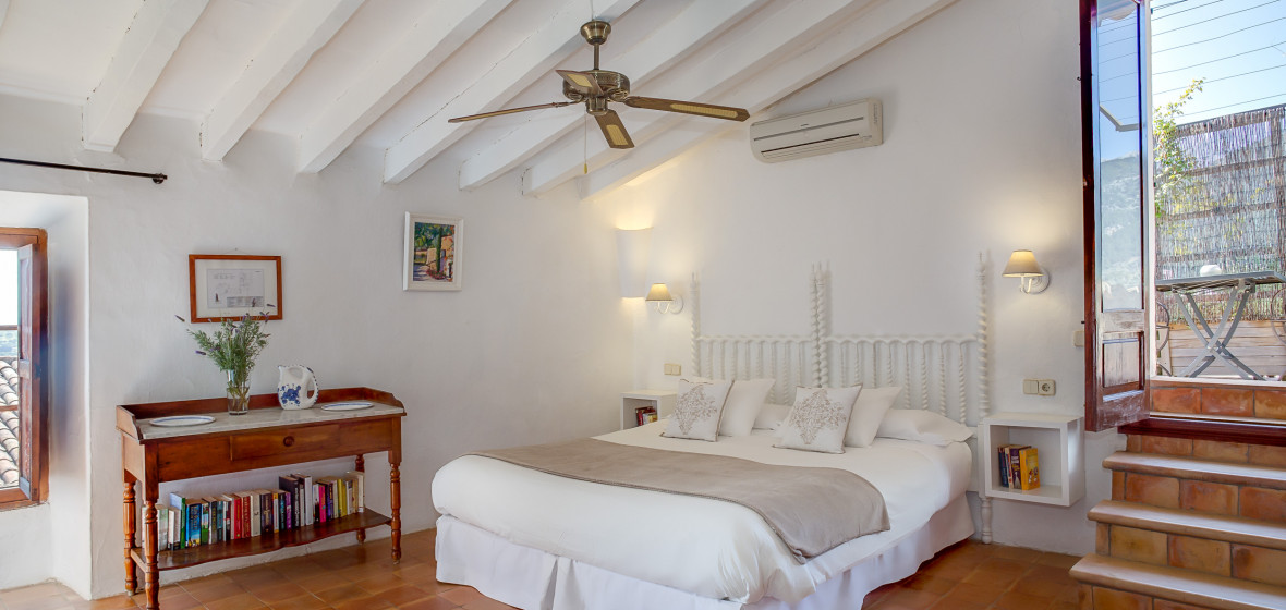 The epitome of what a Hotel Guru hotel should be, Finca Es Castell is small, elegant, laid back, full of atmosphere and offers discreet friendly service. Plus of course great food and a stunning location. If you want a slice of rural Mallorca without having to pay through the nose, then you'll find it here in spades! Set amid 750 acres of working farm (much of the vegetables and meat are used in the delicious food), Finca Es Castell is an 11th century farmhouse (one of the oldest on the island) which oozes character and retains many original features including a staggering olive press which is beautifully smooth from centuries of use. Indeed the layout of the property is exactly as it was in the 15th century, there's been no knocking through the walls here! Rooms are spacious and decor is simple rustic chic throughout; white walls, an eclectic mix of modern and classic art and well placed pieces of antique furniture. The overall feel is of easy comfort - this really is a home from home and guests are encouraged to treat it as such. If it's too hot by the pool, grab the hammock under the olive trees or take your book to the sitting room inside, whilst helping yourself to the honesty bar on the way. The food is fab - there is no choice, but if there's anything you can't eat then let James know in advance and he'll sort it out. Everything is locally sourced and the majority of the ingredients are grown on site (on the farm) from the vegetables and salad to the melt in the mouth lamb and smooth olive oil. Dinner is served on a rooftop terrace with sublime views of the surrounding countryside. Watch the sun set behind the Tramuntana mountains in one direction and the moon rise over the Pollensa plain in the other. Come here for a spot of total relaxation. Or if you prefer a bit of action, it's perfectly placed for hikers to make the most of the Sierra de Tramuntana, which rise up behind the property. Beaches too are just a short hop in the car. All this and it's family friendly too! Quite simply Es Castell is the ultimate hidden gem.