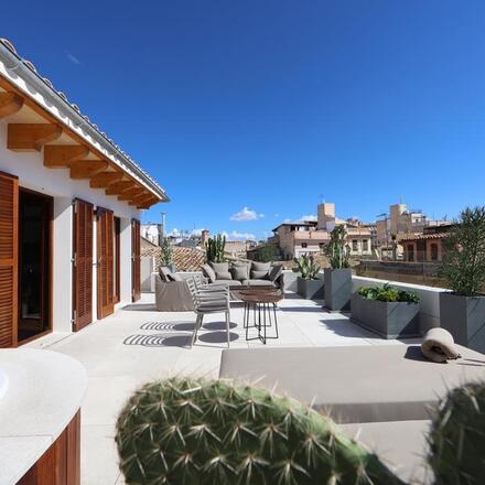 The Tres cleverly combines the old and the new styles, using two 16th. century buildings in the heart of the Old Town and putting very modern rooms into them. Huge photographs of naked bodies hang in the bedrooms; the bathrooms look like pages from a maker of posh taps and showers. If you are not into that style you might say that the public rooms look a bit like a 1950’s Danish airport. But it is undeniably comfortable and the suites are particularly large and attractive. A tiny rooftop pool (with sauna) has a perfect view of the cathedral and the sea beyond.