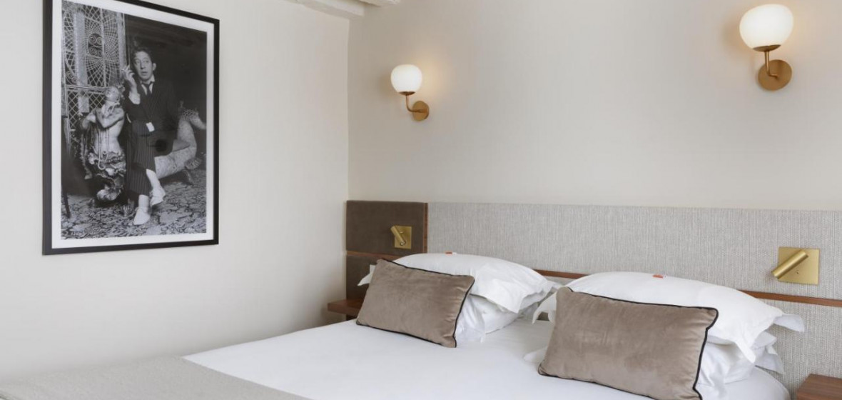 In an alluring St-Germain street, Nicolas Nonon’s hotel is beautiful and enveloping, decorated in the manner of an elegant private house. Bedrooms (specify a large one) are furnished with antiques, with attractive lighting. There’s a cosy sitting room ideal for relaxing, and a cellar breakfast room. The ambience is happy and homely.