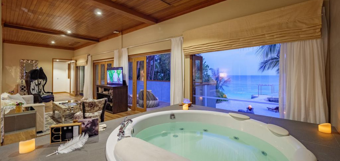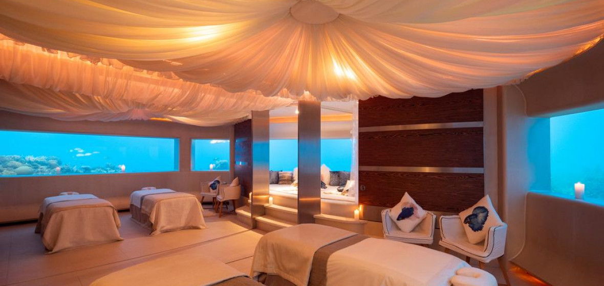 Thirty minutes by speedboat from Malé, Huvafen Fushi offers some real surprises! 'Wow' factor number one is to be pampered in the world’s first glass-walled underwater spa treatment rooms. Follow this with an exploration of the house reef with the resident marine biologist or work out in the overwater gym. Combine your land-based stay with a night at sea on a traditional Maldivian Dhoni or on a 21-meter long sleek powerboat and your visit to Huvafen Fushi will go swimmingly!